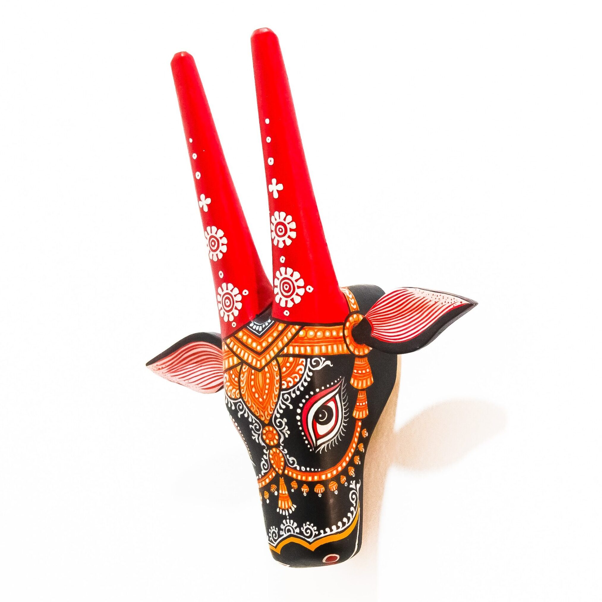 Bring home a piece of traditional artistry with this 10-inch hand-painted wooden cow head. Carefully handcrafted and adorned with bright multicolor designs, this wall décor piece reflects rich folk art and cultural symbolism. Perfect for living rooms, hallways, or gifting, it blends rustic charm with contemporary appeal. Each piece is uniquely painted, making it a one-of-a-kind collectible that adds vibrance and character to any space.